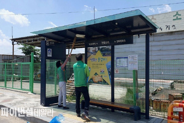 [파이낸셜데일리 박미화 기자] 경북 성주군 선남면 새마을협의회(회장 석춘식, 이필희) 임원 10여명은 지난 9일(금) 오전 11시부터 뜨거운 햇볕 아래 관내 버스승강장 17개소를 돌며 승강장 주변에 놓인 쓰레기를 줍고 거미줄을 제거하는 등 승강장 주변 환경 조성을 위해 노력했다고 밝혔다.