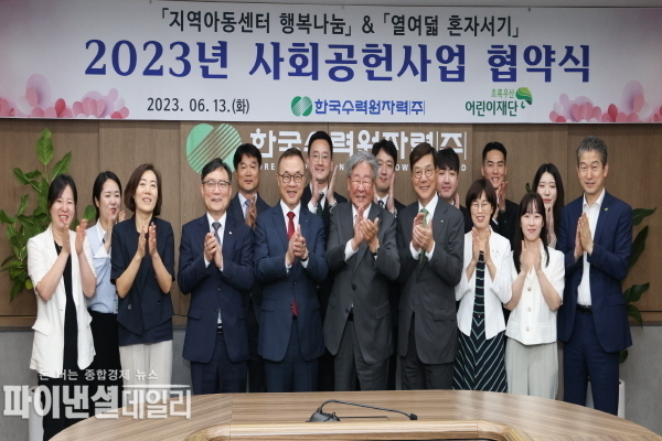 [파이낸셜데일리 박미화 기자] 한국수력원자력(사장 황주호, 이하 한수원)과 아동 옹호 대표기관인 초록우산어린이재단(회장 황영기)이 13일 서울 중구 한수원 방사선보건원에서 미래세대 지원을 위한 ‘2023년 사회공헌사업 협약식’을 개최했다고 밝혔다.