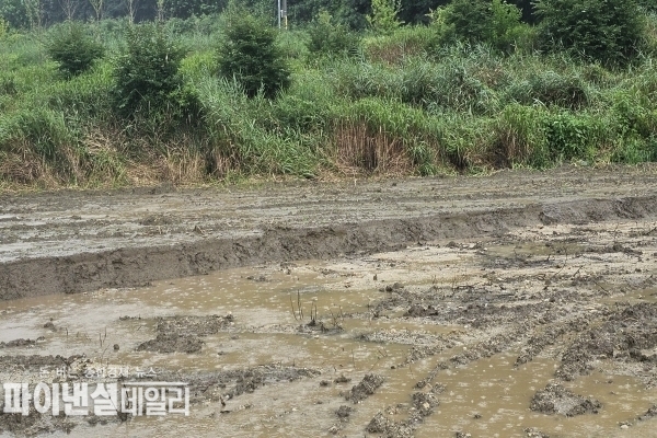 [파이낸셜데일리 박미화 기자] 경북 성주군 벽진면 자산리 1166-1번지(답) 소재 (주)D실업에서 보관 야적했던 사업장 폐기물을 이곳 농지에 25톤 덤프트럭 약 70~80대에 가까운 폐기물이 운반돼 논란이 일고 있다.