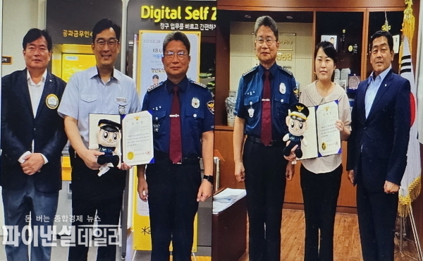 [파이낸셜데일리 박미화 기자] 경북 영천경찰서(서장 이창록)는 지난 18일과 21일 전화금융사기(보이스피싱)피해를 막고 범죄예방에 도움을 준 ‘영천축협 본점’ 및 ‘국민은행 영천지점’ 직원 2명에게 감사장과 기념품을 전달했다고 26일 밝혔다.