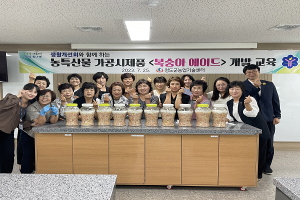 [파이낸셜데일리 박미화 기자] 경북 청도군(군수 김하수)은 지난 25일 농산물가공센터에서 생활개선청도군연합회 군 임원 16명이 참석한 가운데 지역 농특산물을 활용한 가공 시제품으로 복숭아청 만들기 교육을 실시했다고 밝혔다.