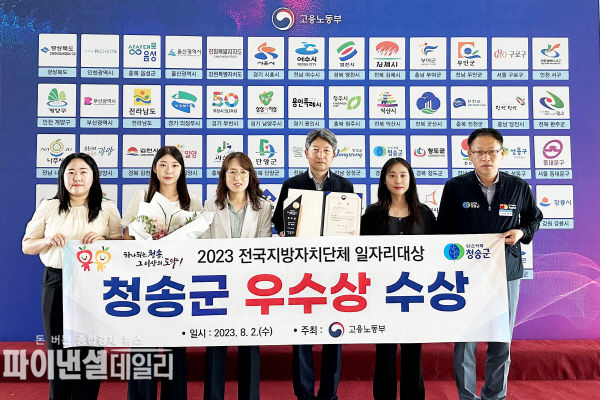 [파이낸셜데일리 박미화 기자] 경북 청송군(군수 윤경희)은 2일 세종 컨벤션센터에서 열린 '2023년 전국 지방자치단체 일자리대상' 시상식에서 2년 연속 일자리 공시제 부문 우수상을 수상했다고 밝혔다.