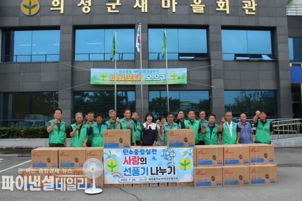 [파이낸셜데일리 박미화 기자] 경북 의성군(군수 김주수) 새마을지도자의성군협의회(회장 양희완)는 새마을회관 마당에서 박희용 새마을회장을 비롯한 군‧읍면 협의회장 25명이 참석한 가운데 '사랑의 선풍기 나누기 행사'를 가졌다고 3일 밝혔다.