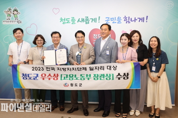 [파이낸셜데일리 박미화 기자] 경북 청도군(군수 김하수)은 '2023년 전국 지방자치단체 일자리대상 평가에서 일자리 공시제 부문 우수상(고용노동부 장관상) 수상'과 함께 상사업비 7천만 원을 확보했다고 밝혔다.