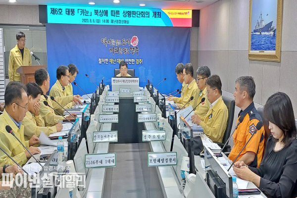 경주시는 지난 6일 오후 시청 재난종합상황실에서 주낙영 경주시장 주재로 제6호 태풍 ‘카눈‘ 북상에 따른 상황판단 회의를 개최했다고 밝혔다.