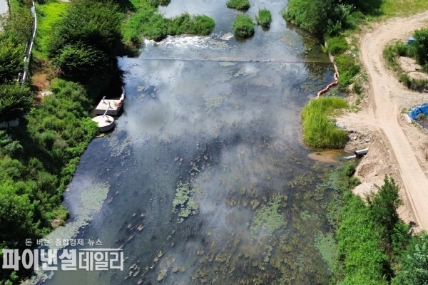 또, 교각기초설치 작업에서 암 발생으로 뿌레카 작업시 희뿌연 돌가루와 흙탕물은 집수정이나 오탁방지막을 설치 후 하천으로 흘러보내야 마땅하나 이곳 현장은 아무런 대책없이 탁도가 심한 오염수를 무단방류해 하천을 오염 시키고 있는 실정이다.