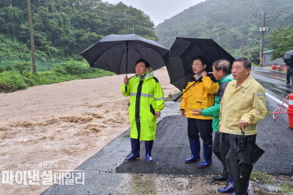 이어 양지마을 남천을 찾아 제방 높이가 낮은 구간에 대한 홍수 방어벽 설치 진행상황을 점검하고 신속한 조치를 지시했다.