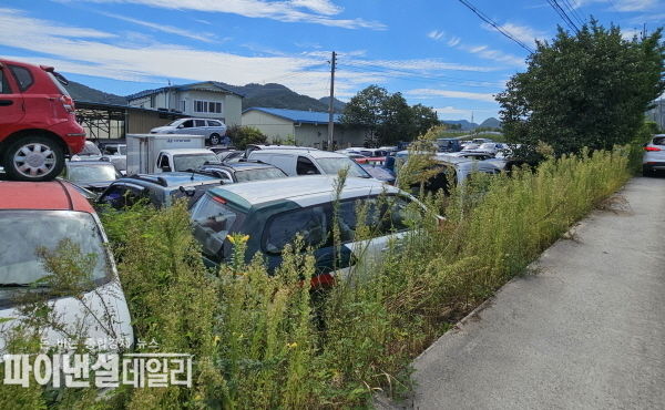 [파이낸셜데일리 박미화 기자] 대구시 군위군 군위읍에 위치한 영남 폐차장에서는 십수년간 폐차장을 운영 하면서 기간 내 폐차를 완료 처리 하지 않고 무단 방치하면서 폐차량이 늘자 농로길이며 하천 제방까지 무단 점유하여 개인주차장 처럼 사용 해 오다 취재진에 적발됐다.