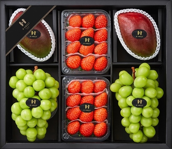 이번 H스위트 딸기 선물세트는 스마트팜을 통해 재배된 딸기를 현대백화점이 당도, 크기 등 상품성을 직접 선별해 구성한 게 특징이다. 선물세트는 설향딸기 2팩(250g*2), 국내산 샤인머스켓 2송이, 브라질 애플망고 2개로 구성되어 있다.