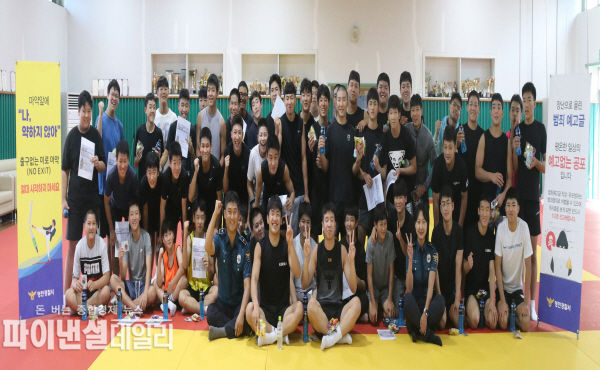 이날 영천경찰서는 금호중ㆍ고교 유도부·배구부·축구부 부원 및 교직원 100여명을 대상으로 흉악범죄 예고글 게시 및 마약범죄 예방 홍보 활동을 실시했다.