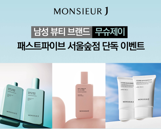 [파이낸셜데일리 서현정 기자] 남성 뷰티 브랜드 무슈제이가 오는 13일, 패스트파이브 서울숲점에서 직장인들을 대상으로 샘플링 이벤트를 진행한다.