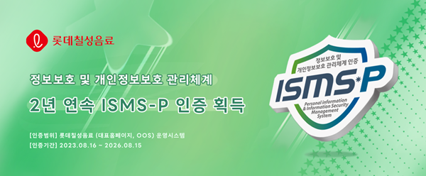 롯데칠성음료는 증대되는 개인정보의 중요성을 반영하여 ISMS-P 인증을 지난해 음료·주류 업계 최초로 자율 취득했다.