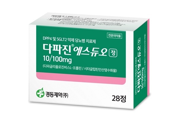 ‘다파진에스듀오정’은 SGLT-2 억제제 계열인 다파글리플로진 10mg과 DPP-4 억제제 계열인 시타글립틴 100mg을 조합한 복합제로 경동제약 자체 생산제품이다.