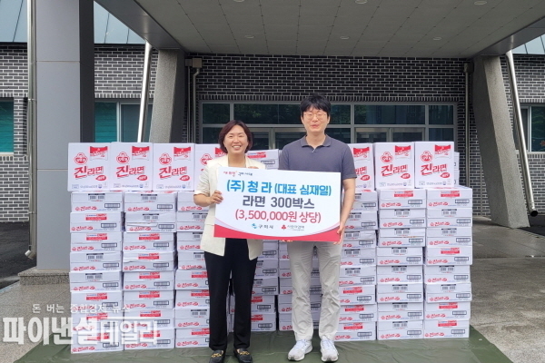 [파이낸셜데일리 박미화 기자] (주)청라(대표 심재일)는 15일 추석 명절을 앞두고 라면 300박스(350만 원 상당)를 구미시에 전달했다고 밝혔다.