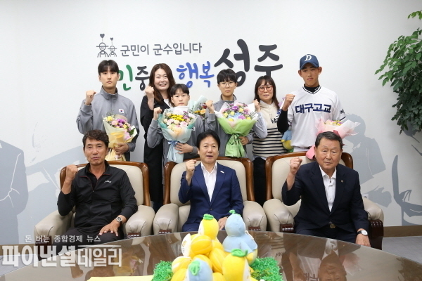 [파이낸셜데일리 박미화 기자] 성주군은 9월 15일(금) 전국 및 국제 대회에서 좋은 성적을 거두어 우리군을 빛낸 태권도 김가람, 최건영 선수, 야구 양현종 선수를 격려하고 포상금을 전달했다.