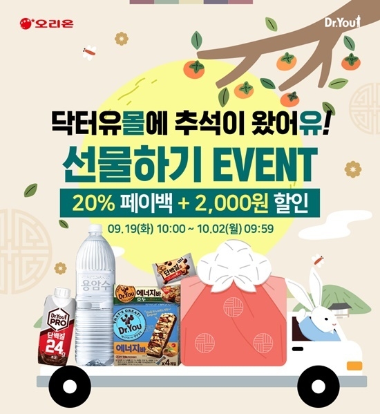 [파이낸셜데일리 서현정 기자] 오리온은 추석 명절을 맞아 ‘닥터유몰’에서 다양한 혜택을 제공하는 ‘추석 선물하기 이벤트’를 진행한다고 19일 밝혔다.