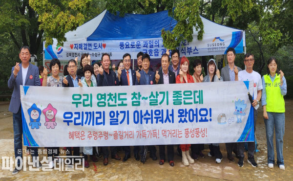 [파이낸셜데일리 박미화 기자] 영천시 금호읍(읍장 최상국)은 지난 16일 대구 수성구 범어2동 한마음 축제의 자매결연 도시 부스로 참가해 범어2동 주민과 축제 참가자를 대상으로 금호읍의 특산품을 시식하고 판매하는 부스 운영과 다양한 시정 홍보 활동에 나섰다고 밝혔다.