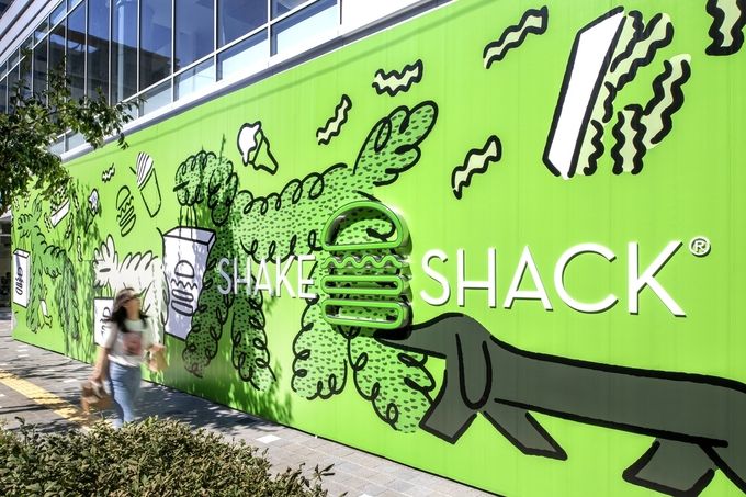쉐이크쉑 목동점은 10월 오픈에 앞서 공사 시작부터 오픈 전까지 설치되는 호딩 아트(Hoarding Art, 공사장 주위의 임시 가림막에 그리는 작품)를 선보인다.