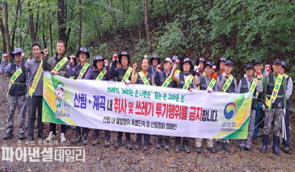 [파이낸셜데일리 박미화 기자] 남부지방산림청 구미국유림관리소(소장 이철)는 9월26일 청도군 운문면 신원리 삼계계곡일대에서 국립운문산자연휴양림 직원과 합동으로 깨끗한 산림환경을 조성하기 위해 산림정화 활동 캠페인을 실시한다고 밝혔다.