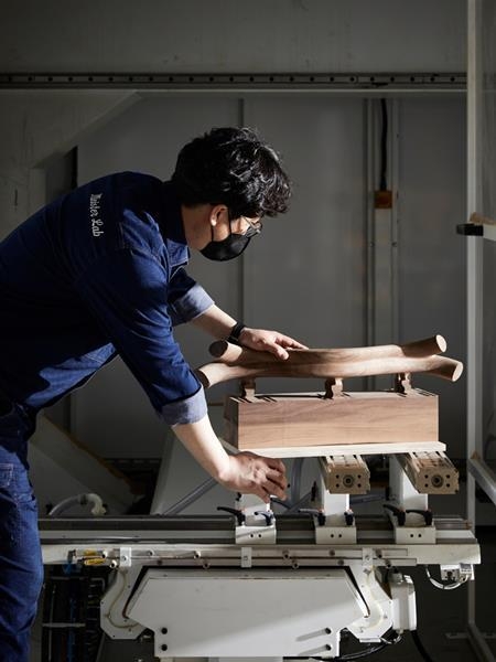 마이스터 랩은 국내 최고 수준의 가구 전문가와 더불어 국내 가구업계 최초로 명품 가구의 필수 요소로 여겨지는 원목 곡면 가공 기술 을 구현하는 ‘5축 CNC 머신’ 등 30여 종의 고기능 설비를 갖추고 있다.