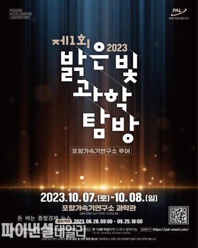 [파이낸셜데일리 박미화 기자] 포항가속기연구소(PAL, 소장 강흥식)는 10월 7일(토)과 8일(일) 이틀 동안「제1회 밝은 빛 과학탐방」을 개최한다. 포항가속기연구소는 1988년에 설립되어 우리나라 기초과학을 견인하고 광복 70주년 과학기술 대표성과 70선에도 선정되는 등 핵심 연구시설(3세대, 4세대 방사광가속기)을 보유하고 운영 중에 있다.