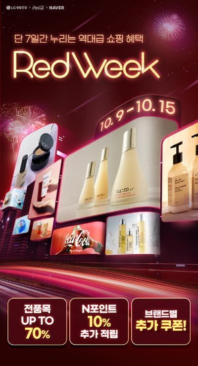 ‘LG생활건강샵’ 등 네이버쇼핑 내 각종 LG생활건강 공식·직영몰에서 열린 이번 레드위크 행사에는 LG생활건강의 뷰티, 생활용품, 음료 브랜드 대다수가 함께 참가해서 고객에게 할인 혜택과 이벤트 등 다양한 고객경험을 제공한다.
