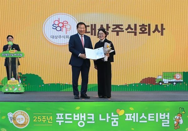 [파이낸셜데일리 서현정 기자] 대상㈜이 푸드뱅크 출범 25주년을 맞아 12일 열린 ‘푸드뱅크 나눔 페스티벌’에서 보건복지부 장관상을 수상했다고 밝혔다.