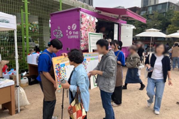 해바라기 봉사단원들은 이날 개인컵을 가지고 오는 행사 참여 주민들에게 무료 음료를 배부하는 활동에 참여했다.