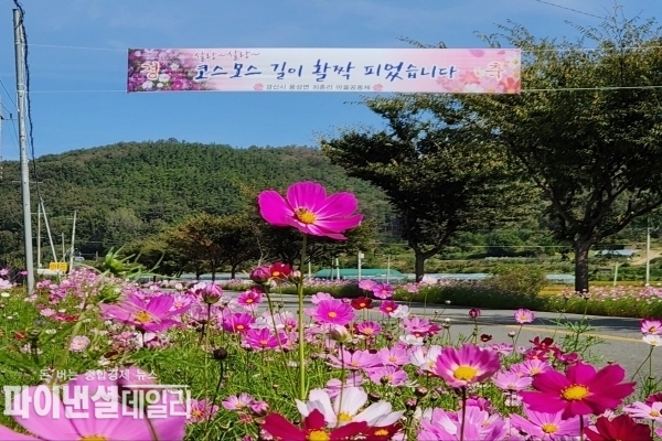 [파이낸셜데일리 박미화] 기자] 경산시 용성면(면장 김충렬)은 외촌리 일대 2km 대로변에 코스모스가 활짝 피어 용성면을 찾아오는 방문객과 지역 주민들에게 가을의 정취를 물씬 느끼고 있다고 13일 밝혔다.