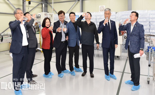 먼저, 경산정수장 옹골찬수 생산시설을 방문하여 현재까지의 옹골찬수 공급 현황 및 향후 계획에 대해 청취하고, 옹골찬수 생산시설에서 병입수 공급과정을 눈으로 직접 점검하며, 만들어진 옹골찬수를 바로 시음하는 시간을 가졌다.