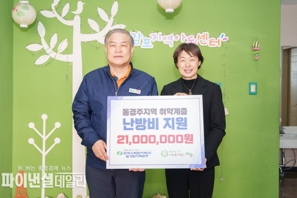 [파이낸셜데일리 박미화 기자] 한국수력원자력(주) 월성원자력본부(본부장 김한성)는 다가올 한파에 대비하여 동경주 지역 취약계층을 위해 난방비 2,100만원을 지원하고, 15일 사회복지법인 해송에서 전달식을 가졌다고 밝혔다.