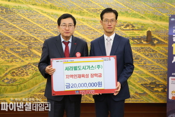 이에 (재)경주시장학회 주낙영 이사장(경주시장)은 “매년 따뜻한 마음을 전해주시는 서라벌도시가스㈜에 감사드린다”며 “기탁 받은 장학금은 우리 지역 인재 육성을 위해 소중히 잘 사용하겠다”고 화답했다.