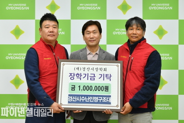 조현일 경산시장은 “연말연시를 맞아 우수한 지역 인재 양성을 위해 성금을 기탁해주신 수난인명구조대에 깊은 감사를 드린다. 장학금은 경산시의 미래를 이끌어갈 인재들이 꿈을 향해 정진할 수 있도록 도움이 필요한 곳에 잘 전달하겠다”고 화답했다.