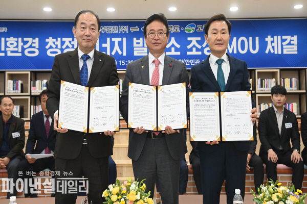 [파이낸셜데일리 박미화 기자] 고령군(군수 이남철)과 경상북도는 5일 경북도청 K창에서 한국중부발전(주)과 함께 고령군 성산면 일원에 추진될 「친환경 청정에너지 발전소 조성」에 대한 투자유치 양해각서를 체결했다고 밝혔다.