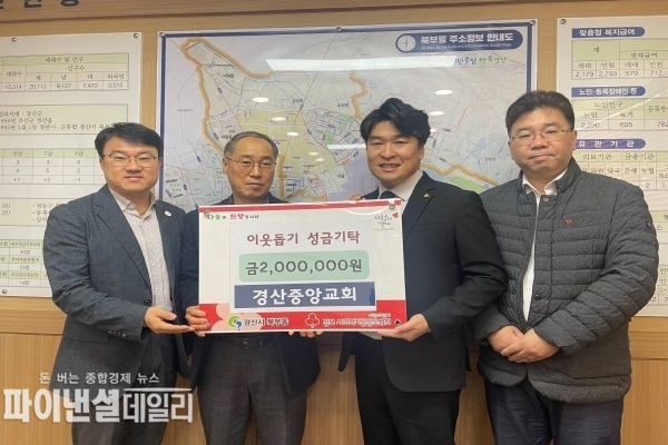 [파이낸셜데일리 박미화 기자] 경산중앙교회(담임목사 김종원)는 경산시 대평동에 소재한 교회로, 매년 성금과 후원 물품 등을 기부하며 지역사회 소외계층을 위한 꾸준한 선행을 이어오고 있다.