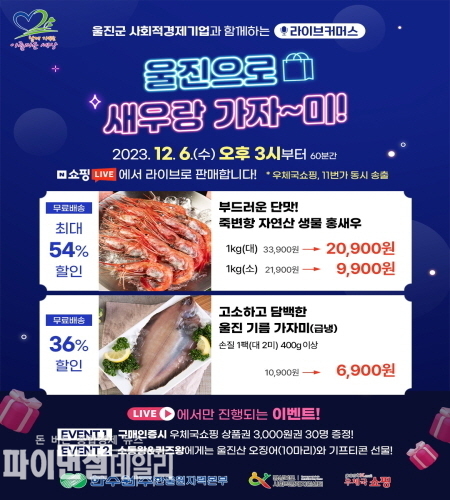 이번 라이브커머스에는 사전 공모에서 선발된 ㈜울진바다소리의 자연산 홍새우와 손질 가자미를 최대 54%까지 할인된 가격에 선보였다.