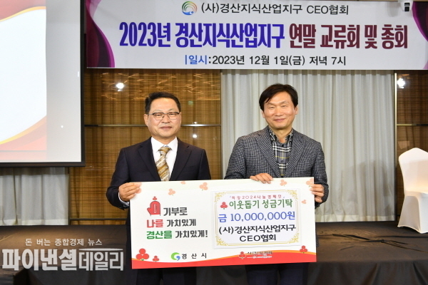 [파이낸셜데일리 박미화 기자] 「(사)경산지식산업지구 CEO협회」는 입주기업 교류회 및 연말총회에서 이웃돕기 성금 1천만원을 기탁했다고 6일 밝혔다.