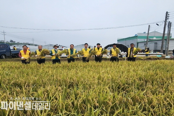선남면 관화리 소재 행복텃밭에서 특화사업으로 추진된 벼농사는 지난 7월 모내기 이후 회원들이 직접 논에 물관리와 잡초 제거 등을 하며 정성을 쏟은 결과, 이날 풍성한 수확의 기쁨을 누릴 수 있었다.