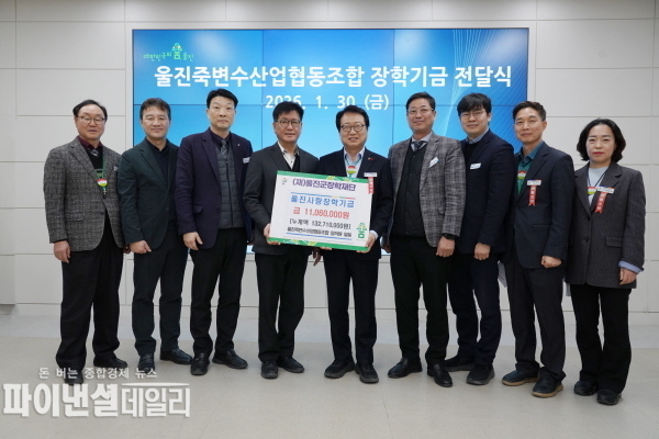 [파이낸셜데일리 박미화 기자] 울진죽변수산업협동조합(조합장 조학형)은 지난 1월 30일 울진사랑 장학기금으로 11,060천원(2025년)을 (재)울진군장학재단에 기탁했다고 밝혔다.