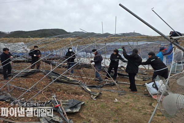 [파이낸셜데일리 박미화 기자] 성주군 수륜면(면장 김경란)은 24일 강풍으로 비닐하우스 피해를 입은 지역 포도재배 농가를(오천리) 찾아 피해 복구 지원에 구슬땀을 흘렸다고 밝혔다.