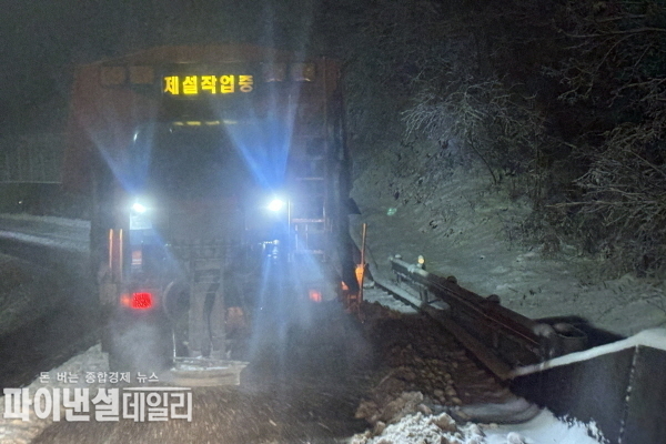 [파이낸셜데일리 박미화 기자] 전날 내린 눈의 영향으로 도로 결빙 우려가 이어지자 경주시가 25일 새벽까지 제설작업을 벌이며 출근길 안전 확보에 나섰다고 밝혔다.