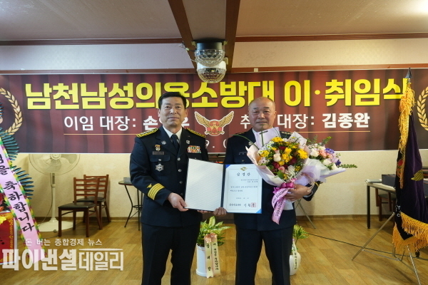 이날 행사에서는 손영우 전 남천남성의용소방대장이 이임하고 김종완 대장이 새롭게 취임하며 남천남성의용소방대의 새로운 출발을 알렸다.