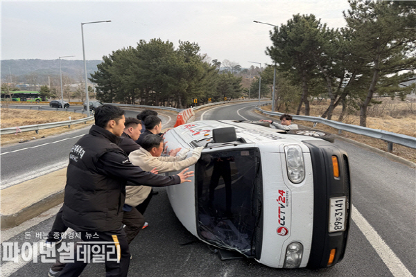 국군체육부대는 지난 3월14일(토) 충청남도, 보령시에서 개최되는 나고야 아시안게임 국가대표 2차 선발전 출전을 위해 대회장으로 이동 중, 대천 IC 출구에서 운전 부주의로 전복된 소형 다목적(다마스)차량을 발견했다.
