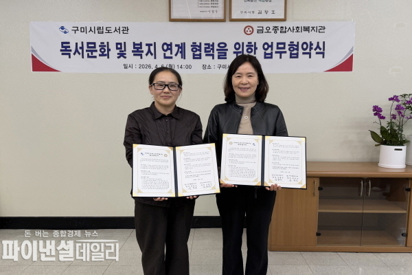 [파이낸셜데일리 박미화 기자] 구미시립중앙도서관은 6일 시립중앙도서관에서 금오종합사회복지관과 지역사회 독서문화 확산과 복지 증진을 위한 업무협약(MOU)을 체결했다고 밝혔다.