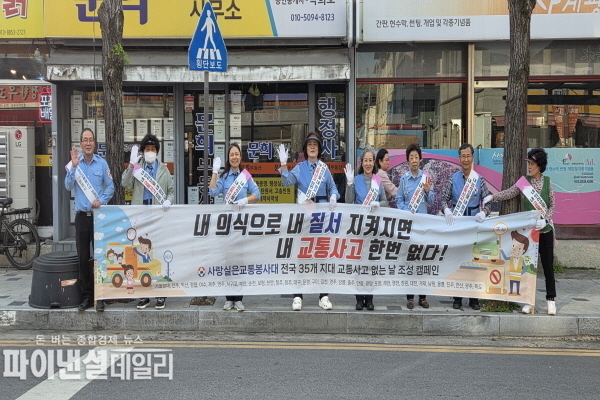 또한, 사랑실은 교통봉사대 대원들은 퇴근시간을 맞아 교통이 혼잡한 모전교 인근 횡단보도에서 교통안전 캠페인을 펼쳤다.