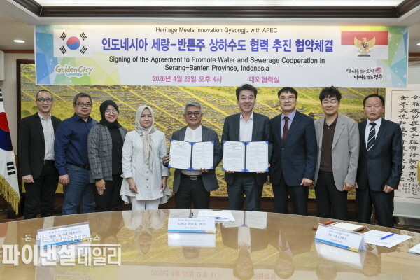 [파이낸셜데일리 박미화 기자] 경주시 물정화 기술의 인도네시아 진출이 본격화됐다. 인도네시아 상수도 공기업 ‘페룸다 티르타 알 반타니 카부파텐 세랑’과 상하수도 협력 양해각서(MOU)를 체결했다고 23일 밝혔다.