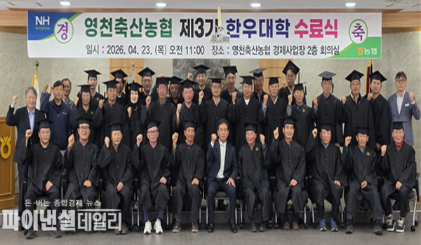 [파이낸셜데일리 박미화 기자] 영천축산농협(조합장 김진수)에서는 지난 23일(목) 오전 11시 경제사업장 2층 회의실에서 한우대학 3기 수료식을 가졌다고 밝혔다.