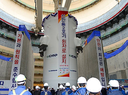 한국수력원자력은 2일 경북 울진군 북면 신한울 원전 건설현장에서 신한울원자력발전소 2호기에 원자로를 설치했다고 밝혔다.