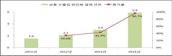 위안화 결제 비중이 높아진 것은 중국이 2009년 4월 위안화 무역결제를 시범 허용한데 이어 지역별로 제한하던 위안화 무역결제 및 국제투자 규제를 2011년에 완전히 풀었기 때문이다.