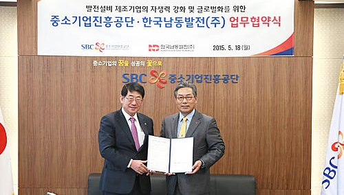 한국남동발전(사장 허엽)과 중소기업진흥공단(이사장 임채운)은 18일 오전 경남 진주 중진공 본사 대회의실에서 발전설비 제조 중소기업 육성을 위한 업무협약을 체결했다.
